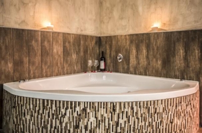 ומרגש, ספת עור רחבה, טלוויזיה בכבלים עם DVD, מיטה זוגית רחבה או עגולה, מיזוג אוויר, ג'קוזי פינתי גדול. מטבח מאובזר עם מקרר קטן, קומקום, מיקרוגל וכלי אוכל ושתייה .