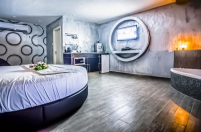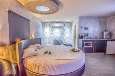 אירוח בסוויטה עם מיטה עגולה שחור לבן :